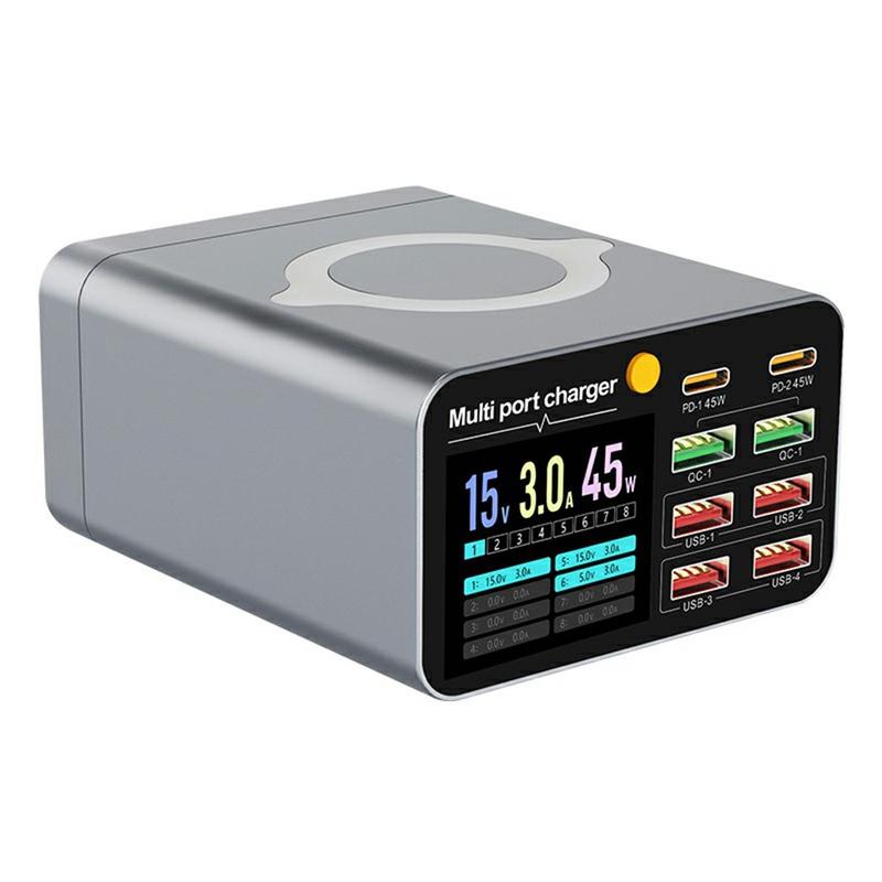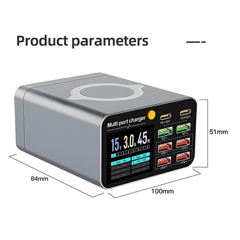 • WLX-M2 80W Desktop Charging Station - 8-Port GaN Fast Charger with USB-C PD & Wireless Charging (EU Plug)