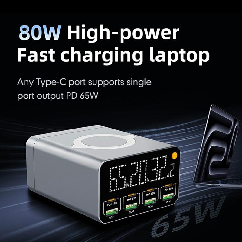 - Ports: 4 × PD, 4 × QC, 1 × wireless charging