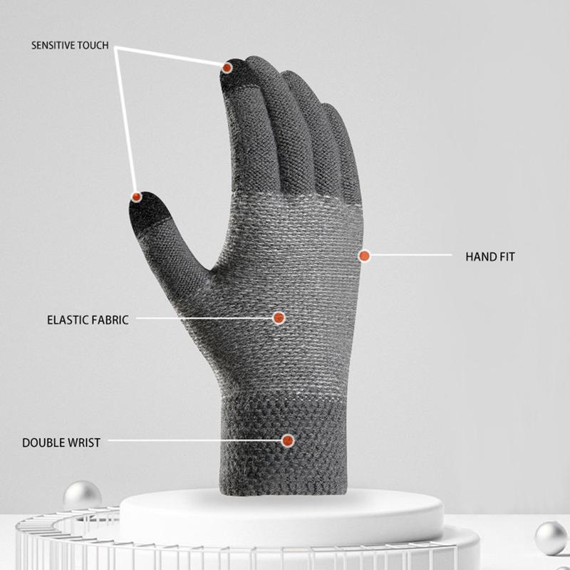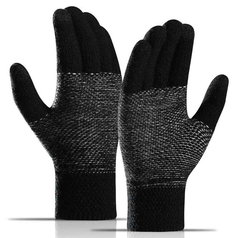 WM 1 Pair Unisex Knitted Warm Gloves Touch Screen Stretchy Mittens Knit Lining Gloves - Black