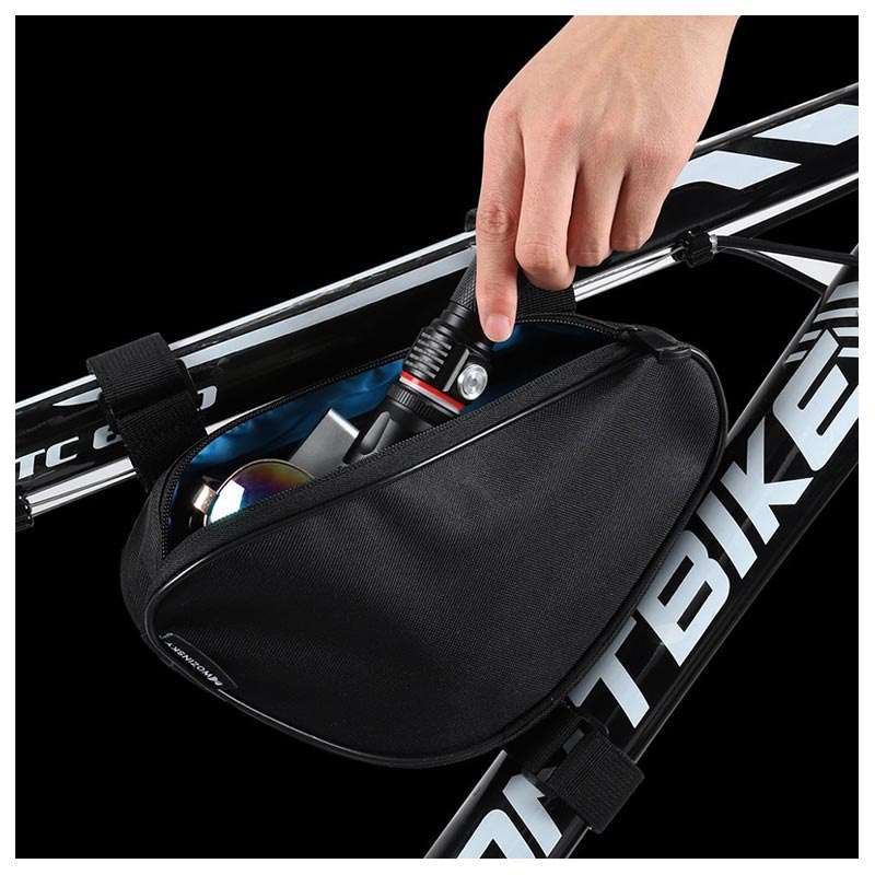 Wozinsky frame bag is made for all cycling lovers. This bag has a sturdy zipper, so your things inside the bag will be very protected. Its triangle shape will fit perfectly on the bicycle frame. It is made of synthetic material that is machine washable. Just purchase this fantastic high-quality bag and prepare yourself for all your bicycle adventures.