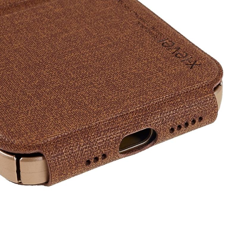 - Vertical-flip type PC+PU leather case opens down for easy operation with one hand