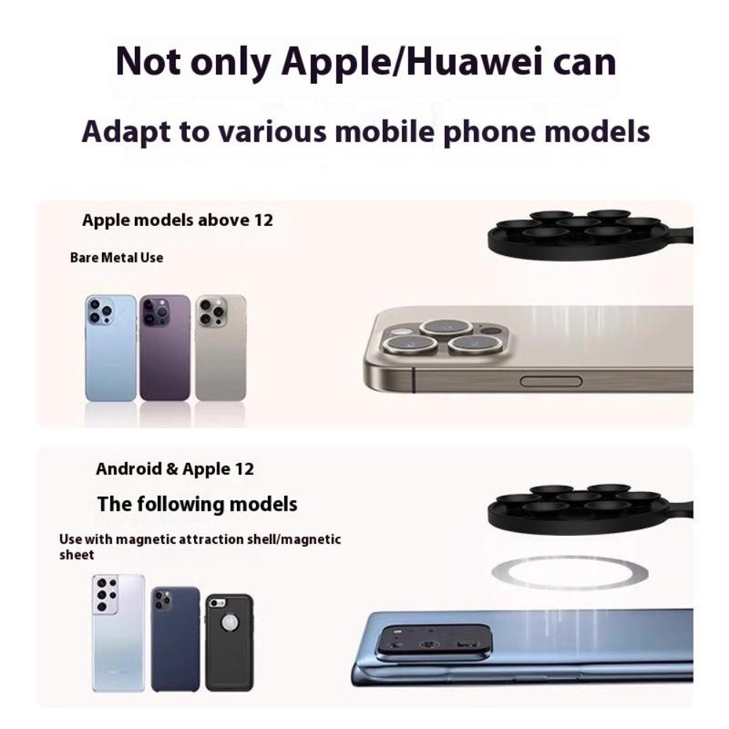 Twelve N52 neodymium magnets team up with a dense silicone suction cup array to lock your phone to glass, tile, metal or glossy dashboards in seconds. The closed magnetic field holds devices up to 1 kg without disturbing GPS or 5G reception, while the vacuum-style cup grips even on bumpy roads.