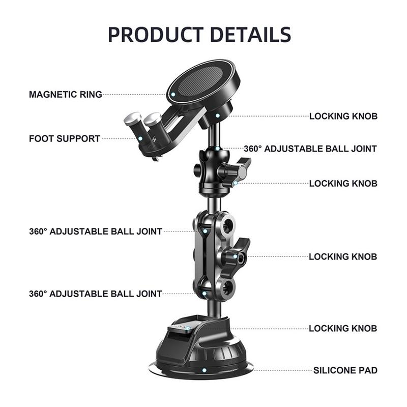 The X037 MagSafe-Compatible Car Phone Holder delivers stability, durability, and versatility in a single package. By combining a powerful N52 magnet with a sturdy suction cup base, it ensures your phone won’t slip or rattle. Plus, its adjustable arm and 360°/180° rotation provide an ergonomic view, making this mount indispensable for everyday commutes and long road trips alike.