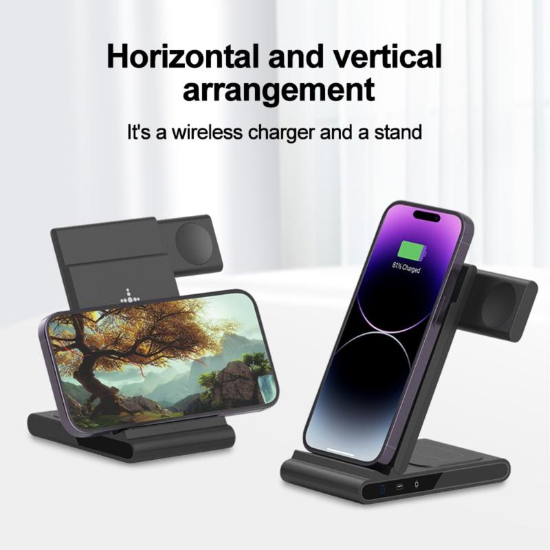 X1 3-in-1 Folding Wireless Charger for iPhone / iWatch / AirPods Portable Fast Charging Stand - Black