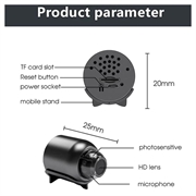 Other auxiliary functions: Motion detection, background alarm, loop recording, video playback, timing recording, alarm work, light off work