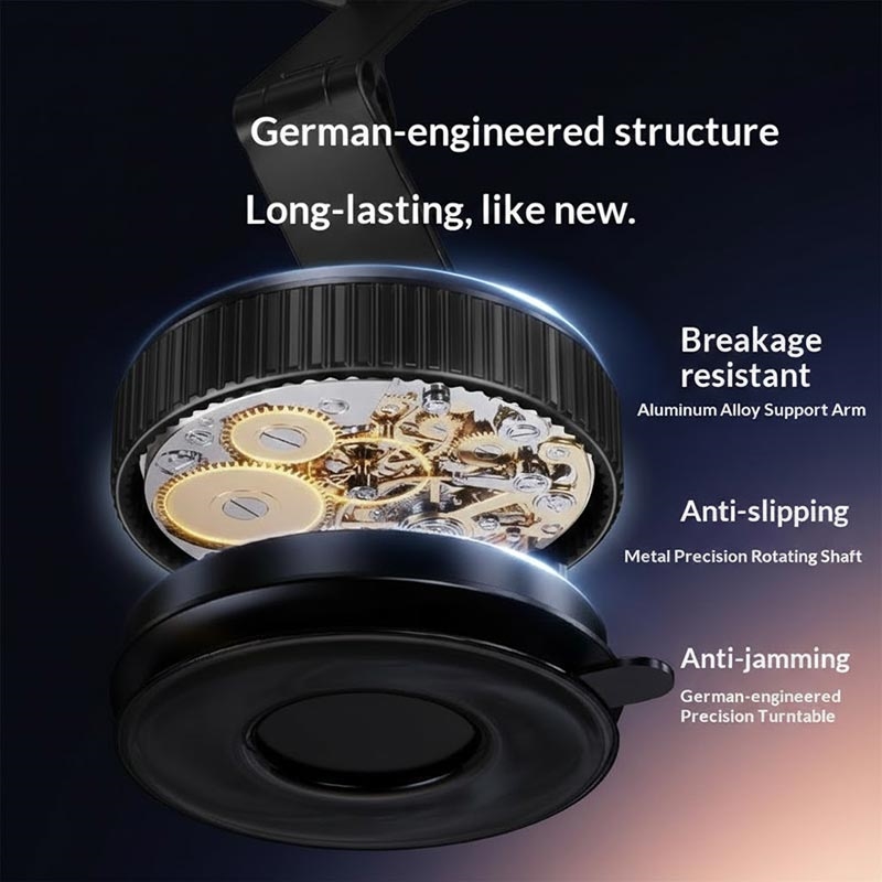Crafted from aluminum alloy, silicone, and durable plastic, the mount delivers smooth adjustment, solid stability, and long-lasting performance inspired by precision engineering.