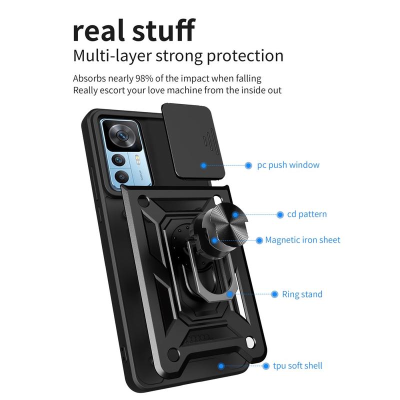 - Rotary Ring hybrid case with camera shield for Xiaomi 12T, 12T Pro, Redmi K50 Ultra