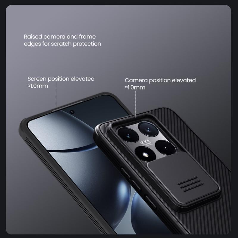 Enjoy extra privacy and protection with the Nillkin CamShield Pro hybrid case. Combining rigid plastic and TPU, the camera cover prevents scratches while defending your Xiaomi 14T from daily wear and tear.