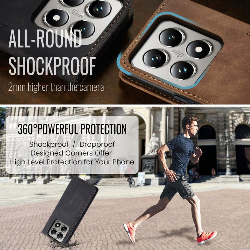 A combination of TPU and polyurethane provides all-around protection for Xiaomi 14T Pro, shielding it from dust, dirt, impacts, scratches, and daily wear. Magnetic attraction keeps the case closed, and clever design enables hands-free usage while watching media content.