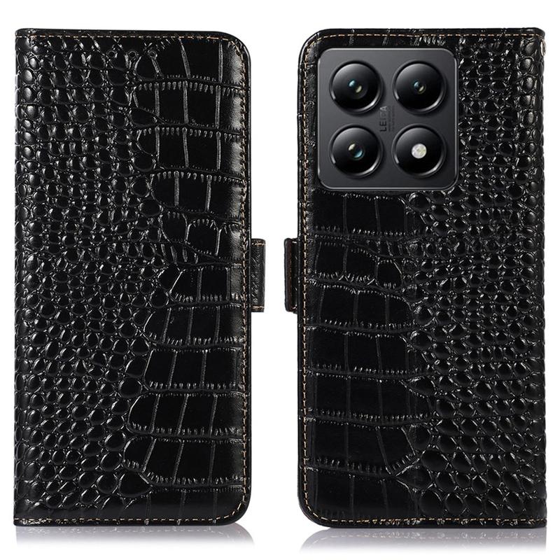 A lightweight and soft wallet case with a unique crocodile texture, the perfect choice to protect your Xiaomi 14T Pro and keep it undamaged. It's made of high-quality genuine leather and inner TPU material, designed with three card slots, an ID slot, and a pocket for cash, ideal for carrying your essentials next to your Xiaomi 14T Pro. Also, RFID technology effectively blocks signals and keep's your data secured.