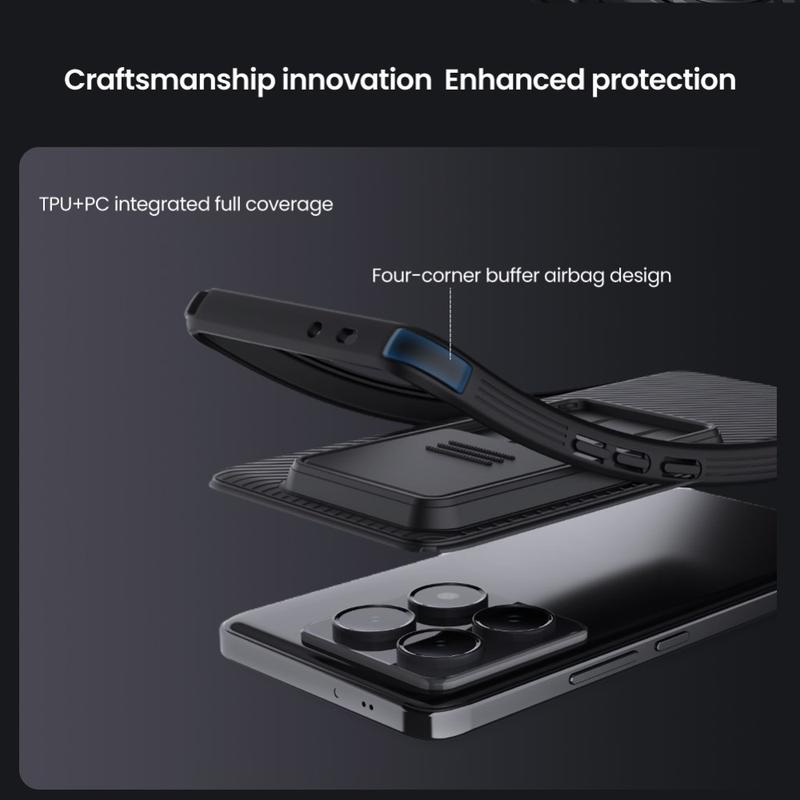 Enjoy extra privacy and protection with the Nillkin CamShield Pro hybrid case. Combining rigid plastic and TPU, the camera cover prevents scratches while defending your Xiaomi 14T Pro from daily wear and tear.