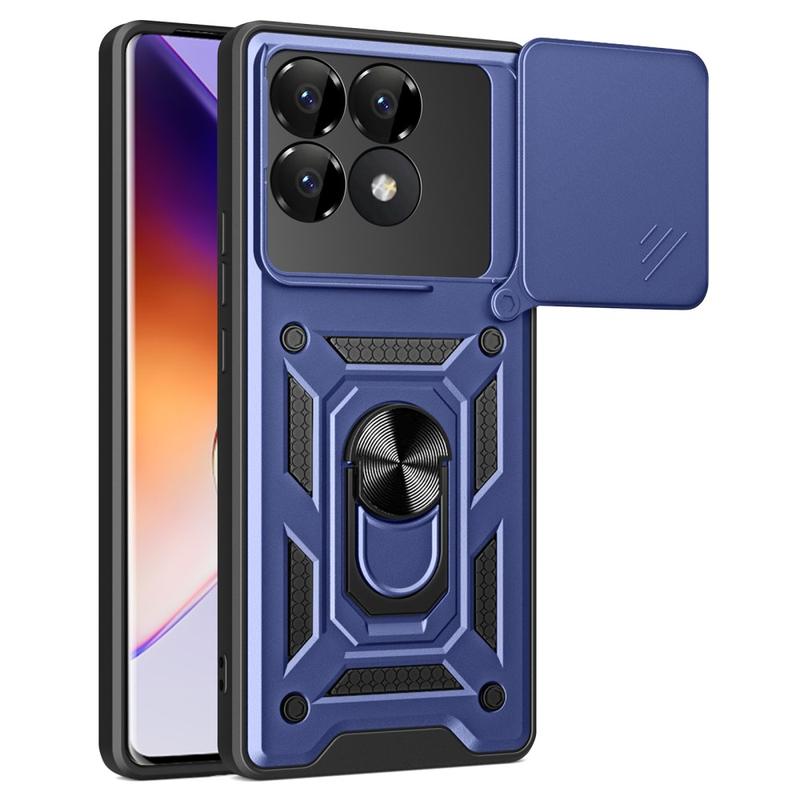 Xiaomi Redmi K70/K70 Pro/Poco F6 Pro Rotary Ring Hybrid Case with Camera Shield - Blue