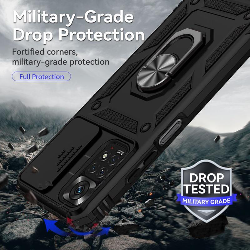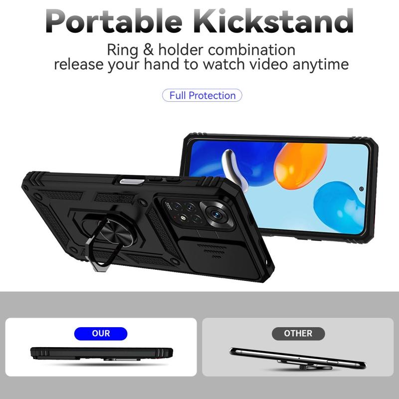 • Rotary Ring Hybrid Case with Camera Shield for Xiaomi Redmi Note 11, Redmi Note 11S