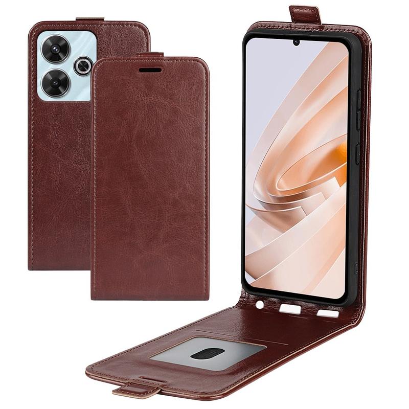 Xiaomi Redmi Note 13R/Redmi 13/Poco M6 4G Vertical Flip Case with Card Slot - Brown