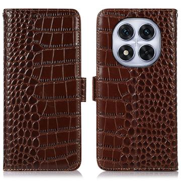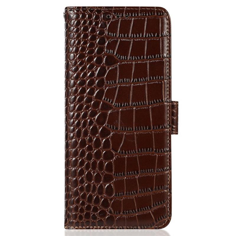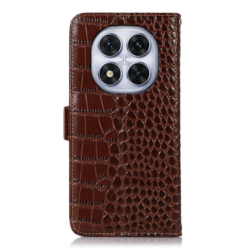 Xiaomi Redmi Note 14 Pro 5G/Poco X7 Crocodile Series Wallet Leather Case with RFID - Brown