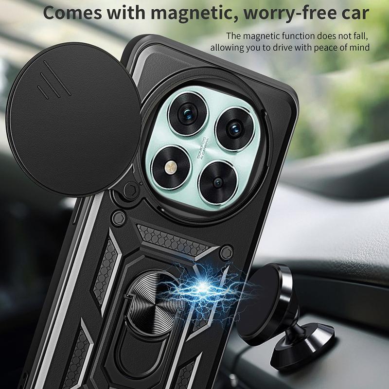 • Rotary Ring Hybrid Case with Camera Shield for Xiaomi Redmi Note 14 Pro 5G, Poco X7