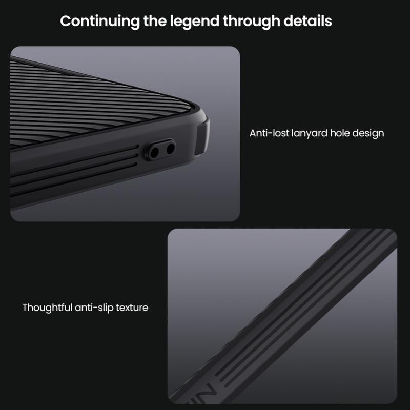 - This extraordinary Nillkin CamShield Prop hybrid case is made of plastic and TPU materials
