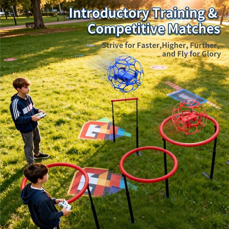 The XKJ K26 football-style drone is a lightweight flying ball quadcopter designed for safe, exciting play. Its spherical protective net structure surrounds the propellers, helping reduce the risk of collisions and making it suitable for children and first-time drone users, both indoors and outdoors.