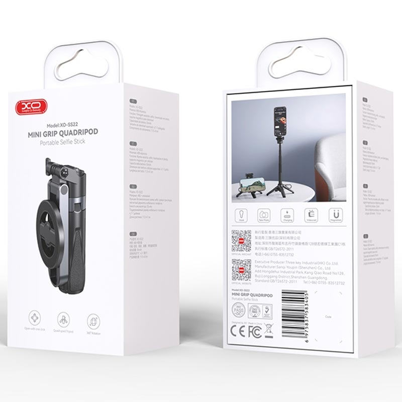 XO SS22 4-in-1 Magnetic Bluetooth Selfie Stick and Tripod - Compact Phone Holder with Remote Shutter