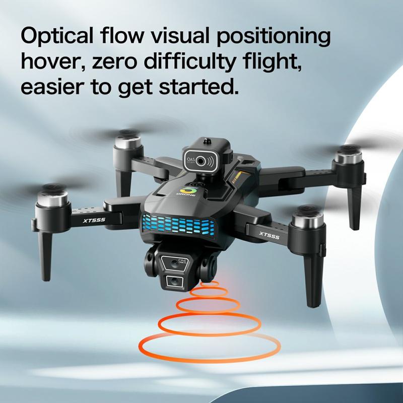 The XT555 is a feature-packed GPS drone designed for stable flights, easy navigation, and creative aerial shots. With dual cameras, intelligent flight modes, and a large-screen remote with 5G image transmission, you can fly and frame your content without relying on a smartphone. Brushless motors, obstacle avoidance, GPS return functions, and optical flow positioning make it a solid choice for outdoor filming, weekend flying, and learning advanced drone features.