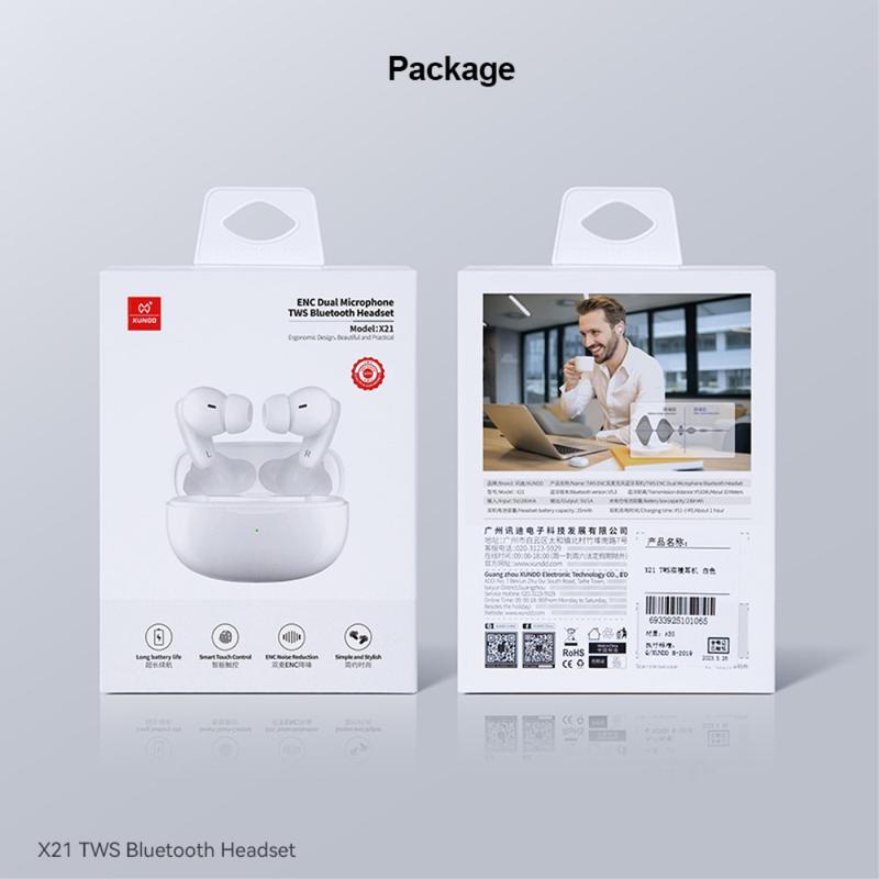 XUNDD X21 TWS Headphones V5.3 Bluetooth Earphones ENC Noise Reduction Wireless Earbuds - Black