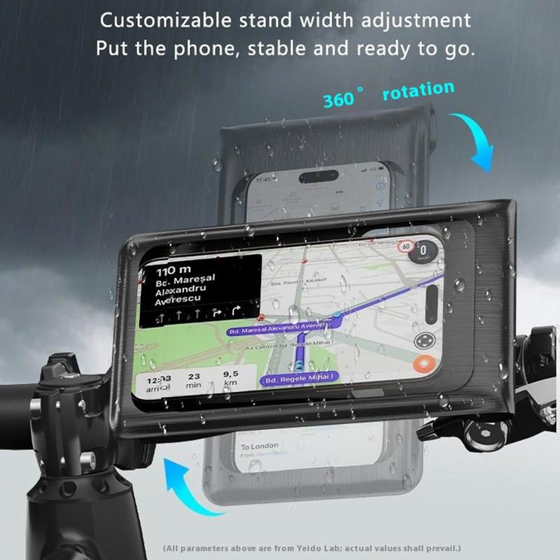 Ride in any weather with the YESIDO C333 Waterproof Phone Holder Bag, designed for bicycles and electric bikes. Its fully enclosed IP67-rated construction helps protect your phone from rain, dust, and road spray, while the large transparent window keeps your screen visible for navigation and calls. With 360 degree rotation and a secure handlebar mount, you can set the perfect viewing angle and keep your device stable on every trip.