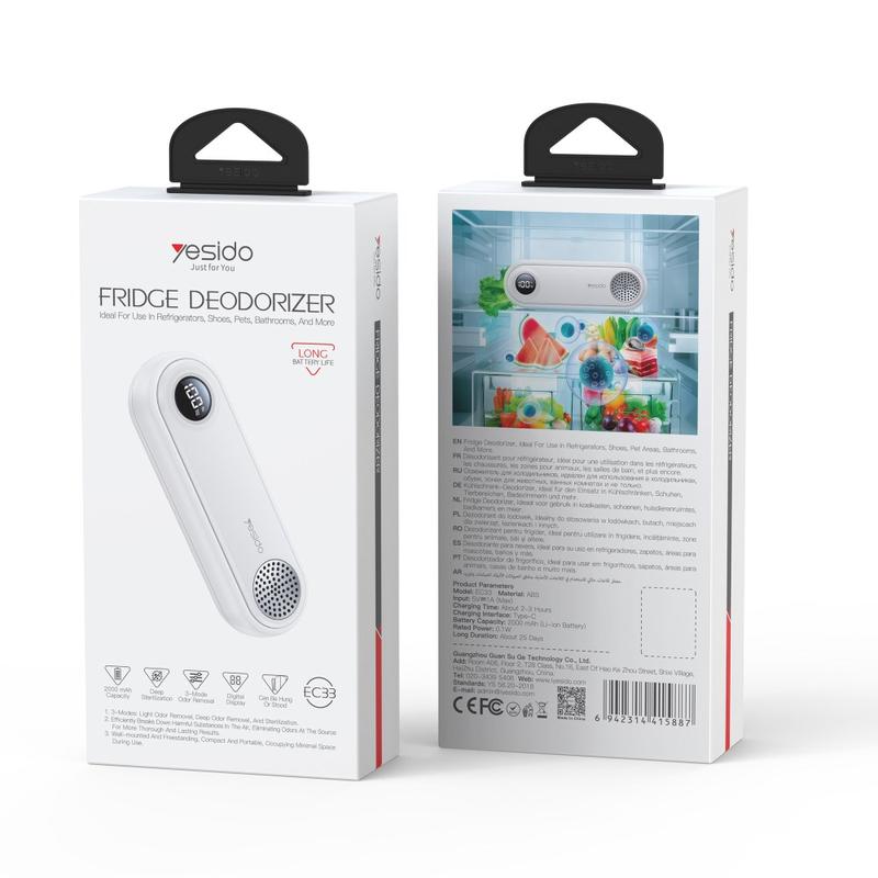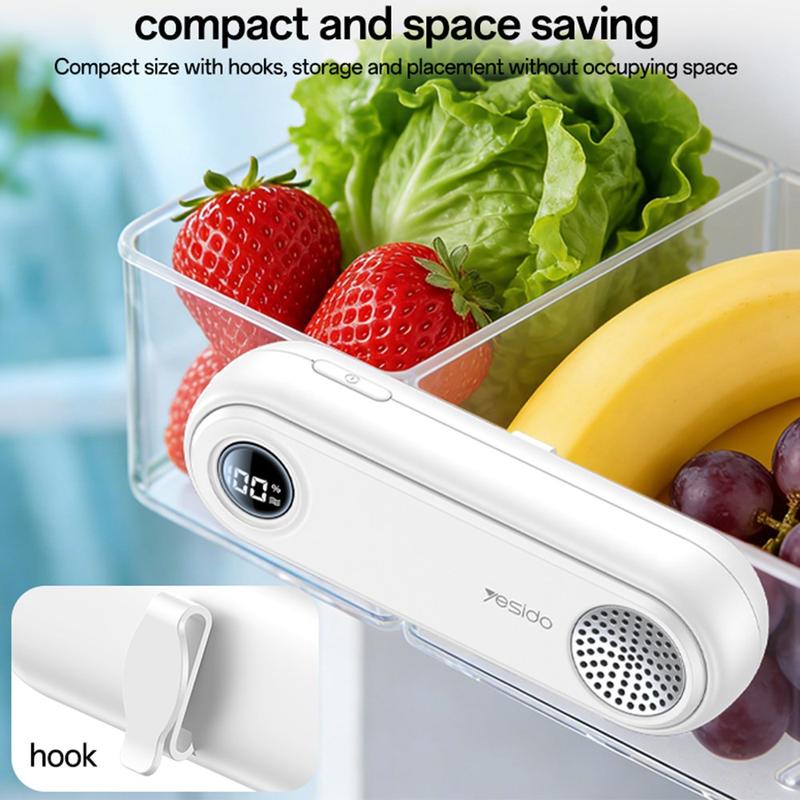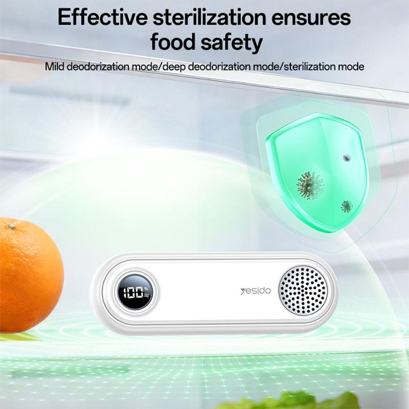• Yesido EC33 Multi-Functional Fridge Deodorizer - Rechargeable Odor Eliminator & Sterilizer with Digital Display, 3 Modes, USB-C Charging