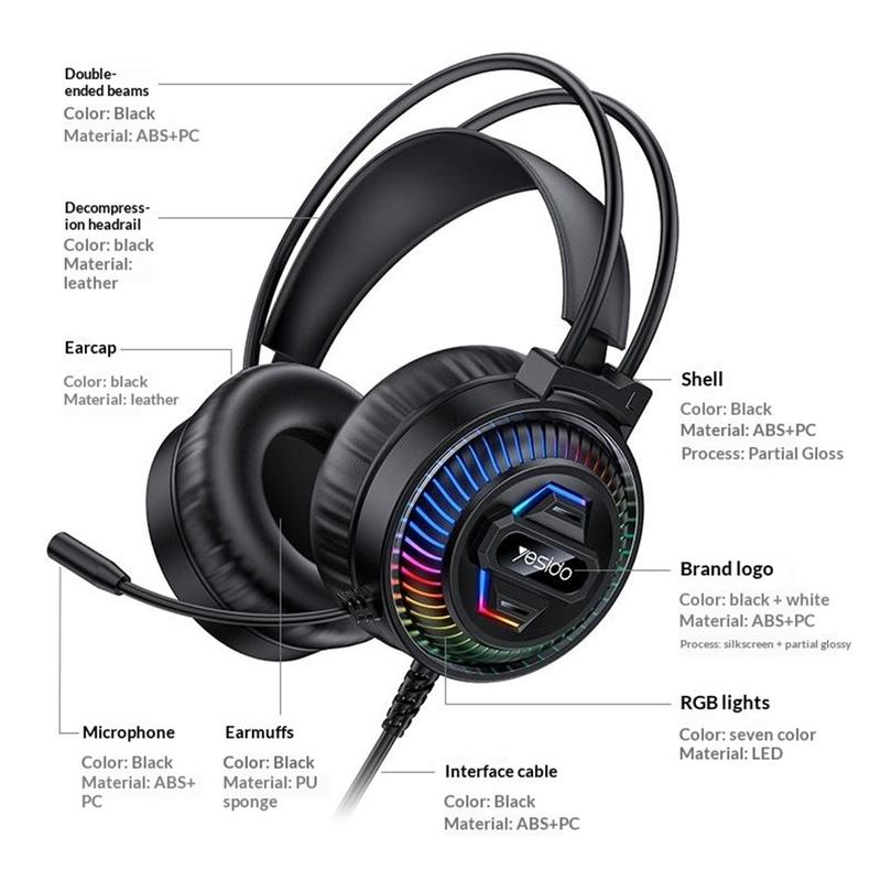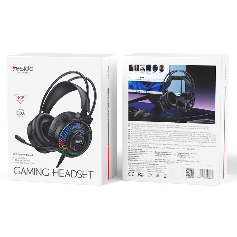 Yesido EK06 wired RGB gaming headset is designed for players who want clear sound, comfortable wear, and a more dynamic gaming setup. With 40mm HD audio drivers, RGB lighting effects, and a 360 microphone, this headset is a practical choice for gaming, voice chat, streaming, and everyday computer use. Its wired USB-A connection offers stable performance, making it well suited for PC gaming sessions at home or in the office.