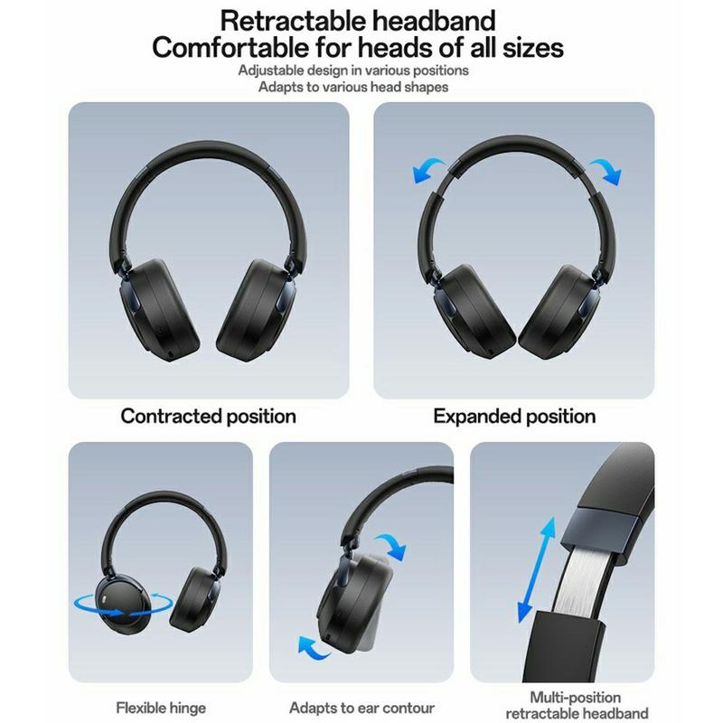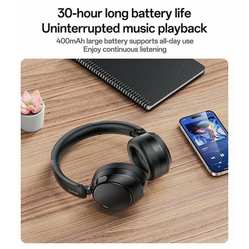 The Yesido EP11 wireless over-ear headphones are built for everyday comfort, immersive sound, and clearer calls—whether you re commuting, working, or gaming. The ergonomic over-ear shape is designed to sit comfortably without squeezing your ears, making longer listening sessions feel easier. With dual-feed ANC + ENC powered by 4 microphones, the EP11 reduces background noise for a more focused audio experience and cleaner voice pickup during calls. Enjoy deep, rich sound from 40 mm titanium film drivers with a spacious 3D surround feel, then switch effortlessly between wireless BT 5.4 freedom and a 3.5 mm audio cable when you want a wired connection. A strong battery delivers up to 30 hours of use with noise cancelling on, and Type-C charging keeps power-ups simple.