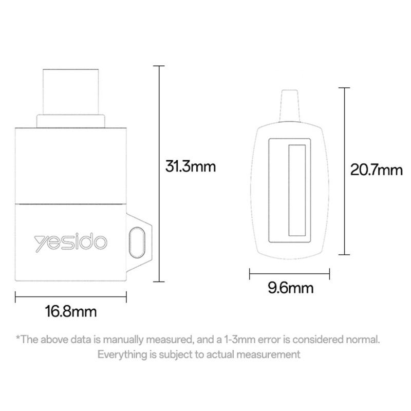 Yesido GS31 USB 3.0 to USB-C OTG Adapter - 18W Fast-Charging Aluminium Alloy Converter