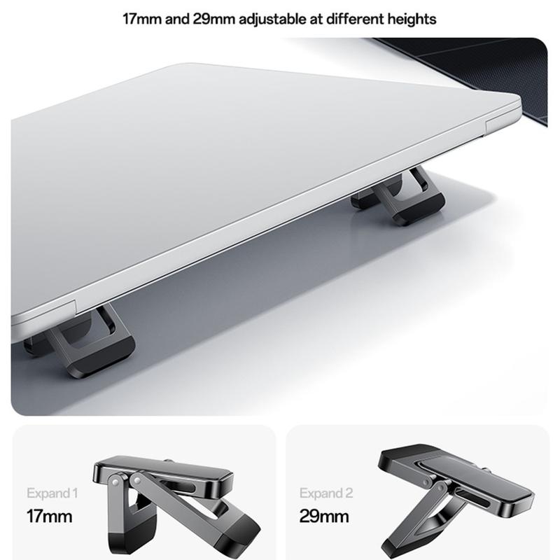 Improve comfort and airflow while working with the YESIDO LP11 laptop riser stand set. Designed as a compact pair of foldable supports, these ultra-thin stands attach to the bottom of your laptop and quickly unfold into a stable triangular support. By elevating the device slightly, they help create better airflow underneath the laptop while also improving the viewing angle for more comfortable typing and screen positioning.