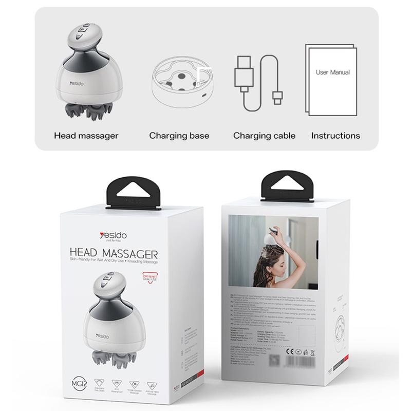 YESIDO MG12 IPX7 Waterproof Low Noise Head Massager with Detachable Charging Dock