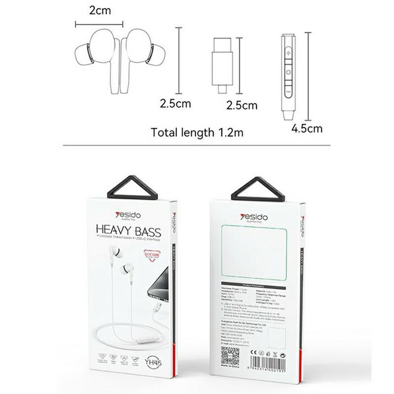 Yesido YH45 Wired USB-C Earphones with DAC Chip - White