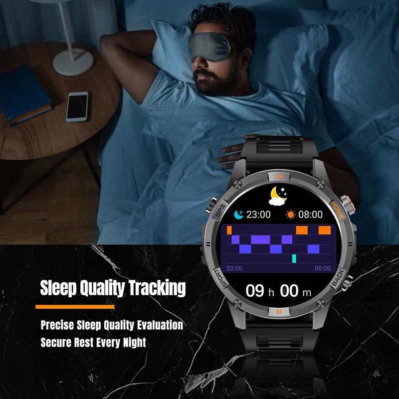 Designed for outdoor adventures, the watch features a built-in flashlight, GPS positioning and a digital compass, helping you navigate trails and track your routes with confidence. Its 580 mAh high-capacity battery offers long-lasting performance, delivering up to 40 days of standby time and approximately 7 days of regular use. With an IP68 waterproof rating, it withstands rain, splashes and swimming without worry.