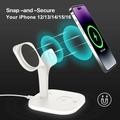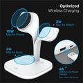 - 3-in-1 Wireless Charging: Equipped with two built-in charging pads compatible with MagSafe, this station allows for simultaneous charging of your iPhone, Apple Watch, and AirPods, streamlining your charging needs.