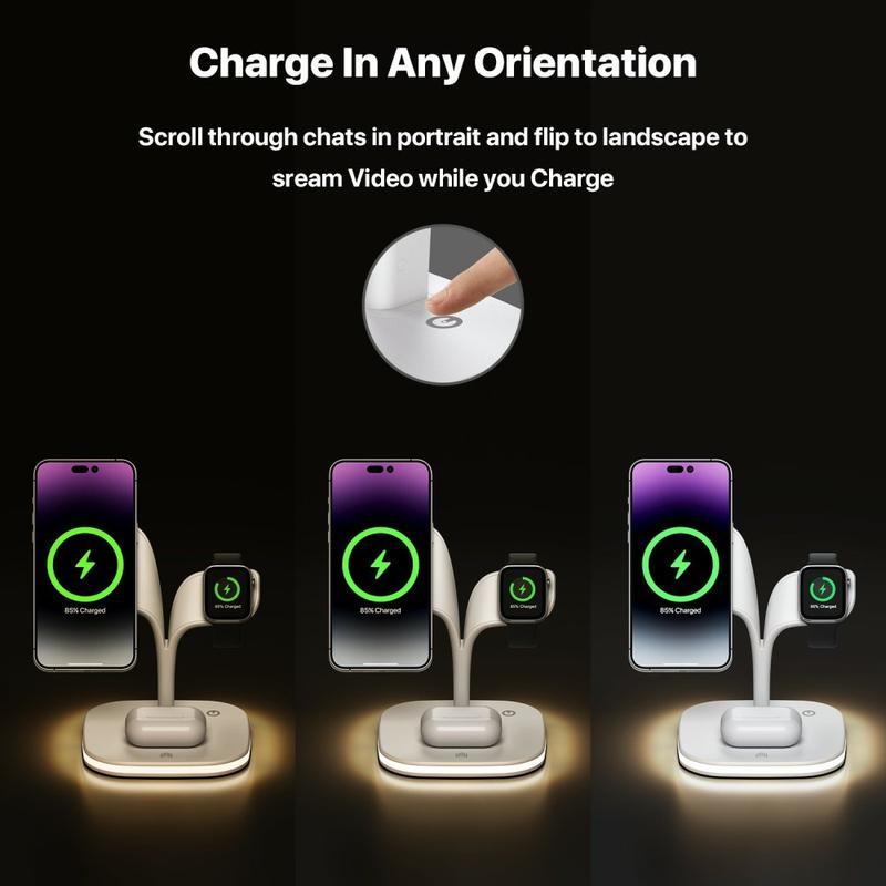 • YM-UD22 Pro 3-in-1 MagSafe Charging Station with Night Light for iPhone, Apple Watch, and AirPods - 15W, 3W, 2W