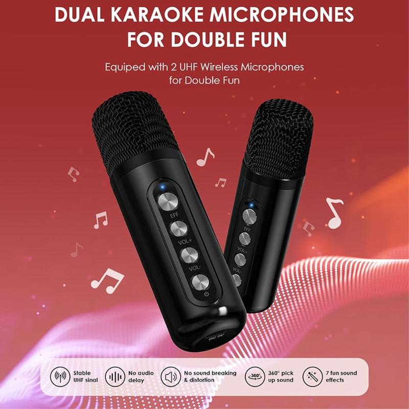 Portable Bluetooth speakers with microphones are small and light, offering multiple sound effects. Perfect for in-car karaoke, family gatherings, presentations, and more