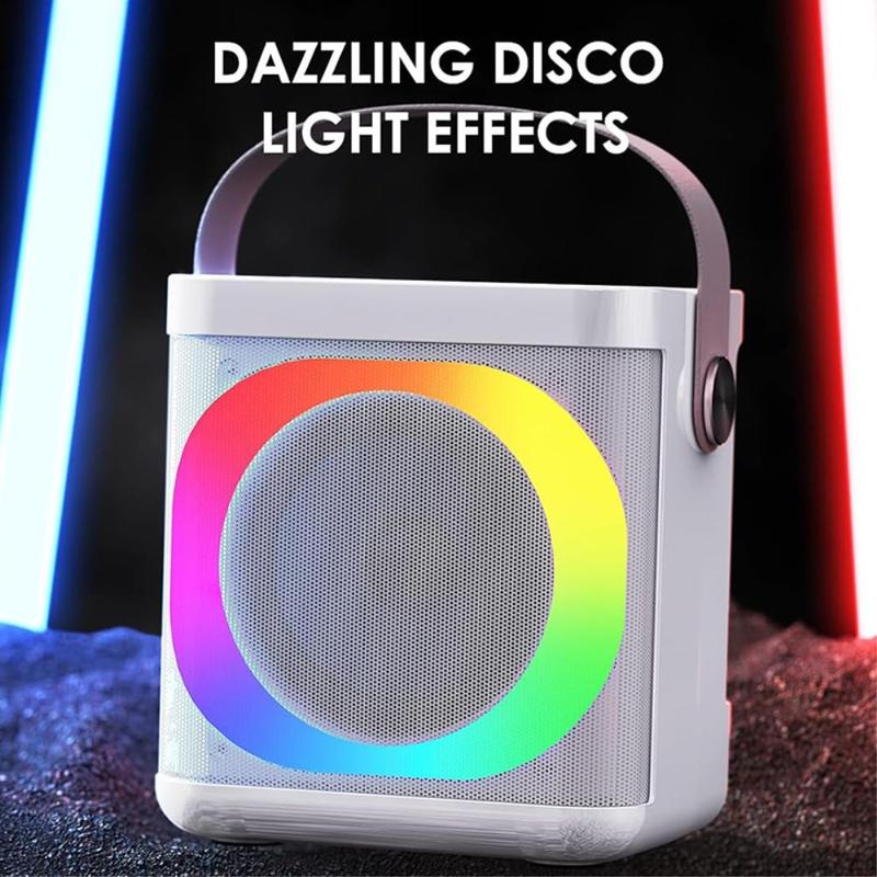 The karaoke system is equipped with colorful disco lights and has an independent button to switch the lights. The colorful LED lights allow you, your family, and friends to enjoy a colorful and joyful party atmosphere