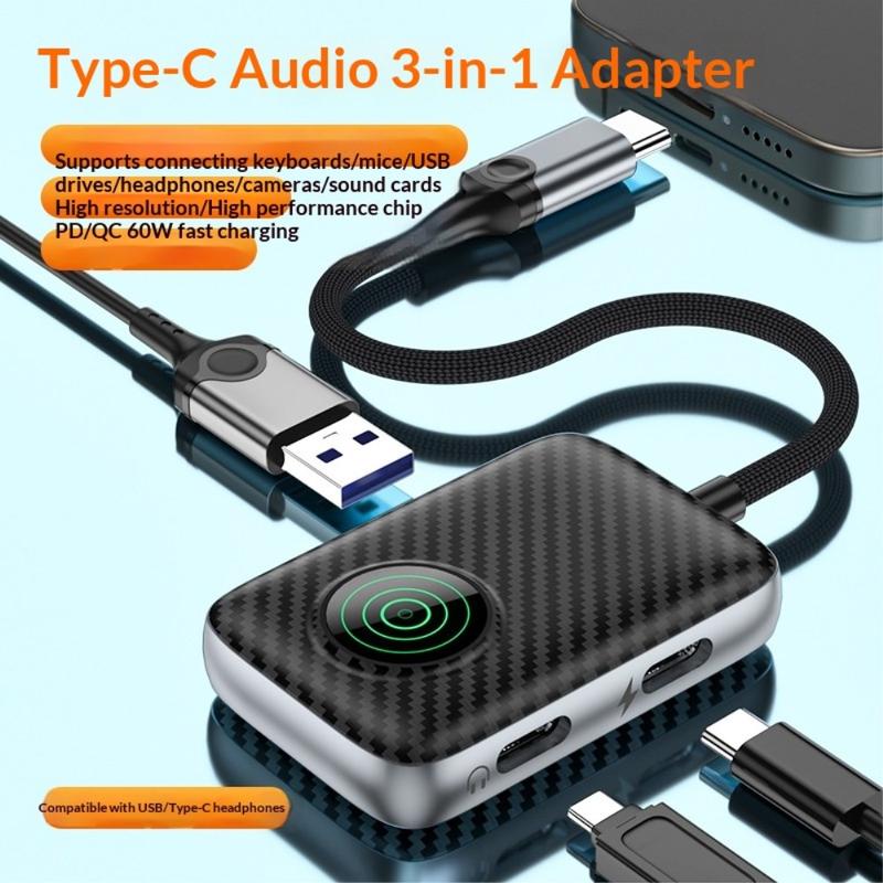 ZC4339 3-in-1 USB-C OTG Adapter / Hub – USB 3.0 Data, USB-C Audio/Data and 60W PD Fast Charging