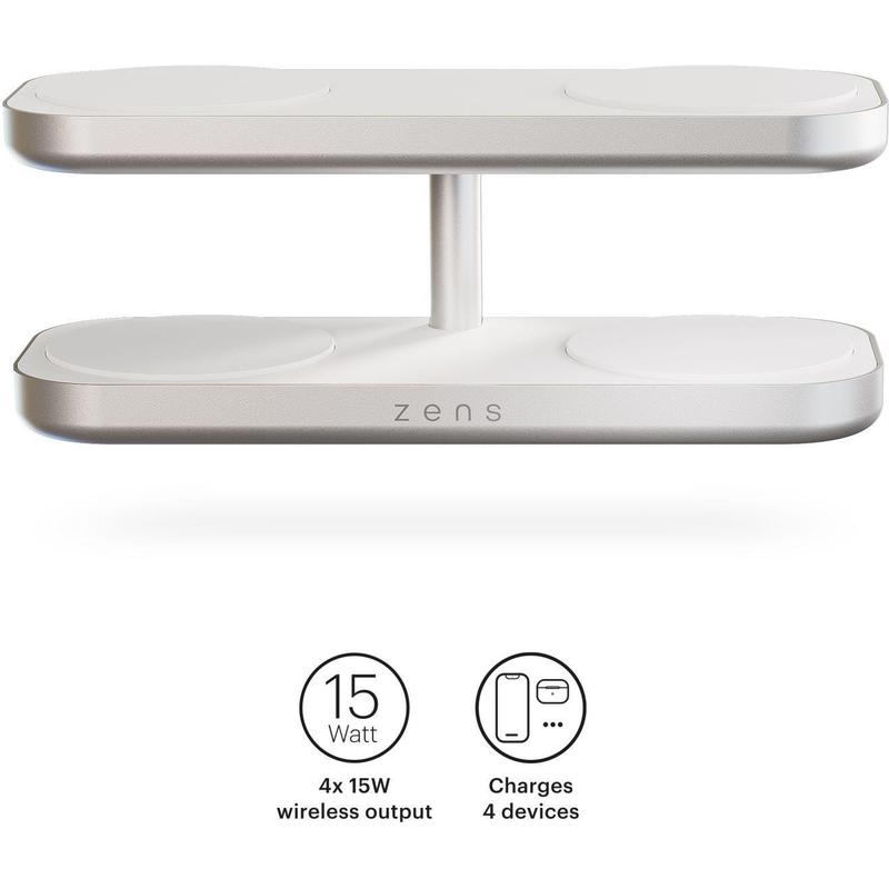 Zens Aluminium Quattro Wireless Charger Pro 4 with 65W Power Adapter for iPhone 12/13/14/15/16/17/Air, AirPods - MagSafe Compatible, Qi2, 4x 15W