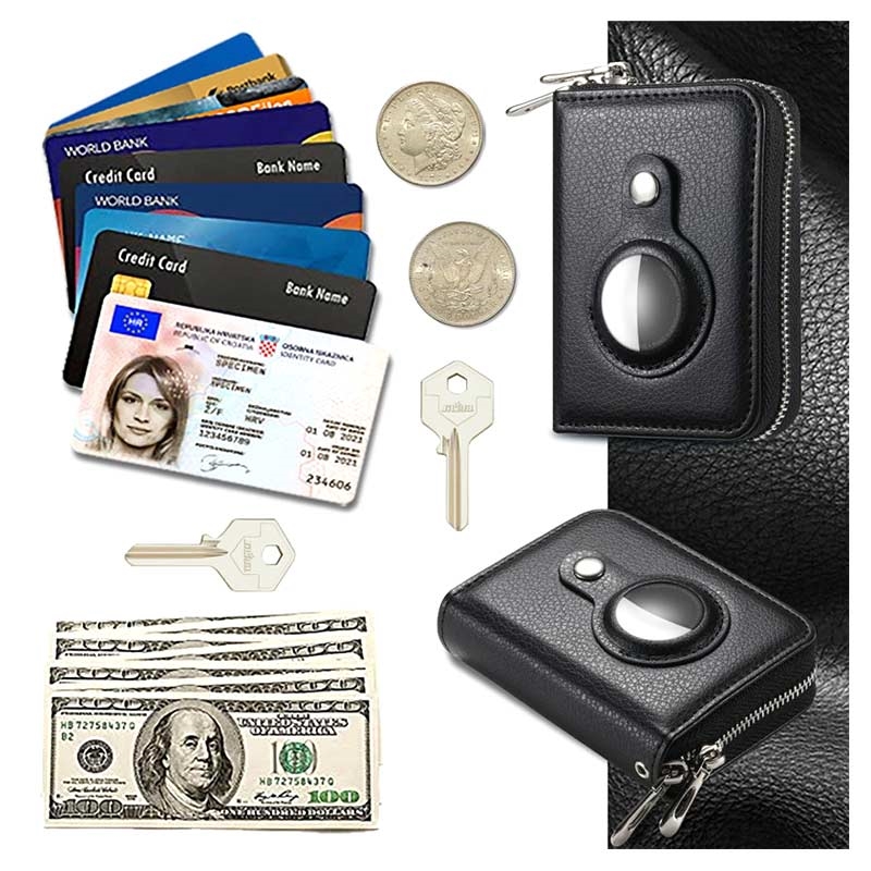 Zipper Wallet with Apple AirTag 1, AirTag 2 Holder and RFID