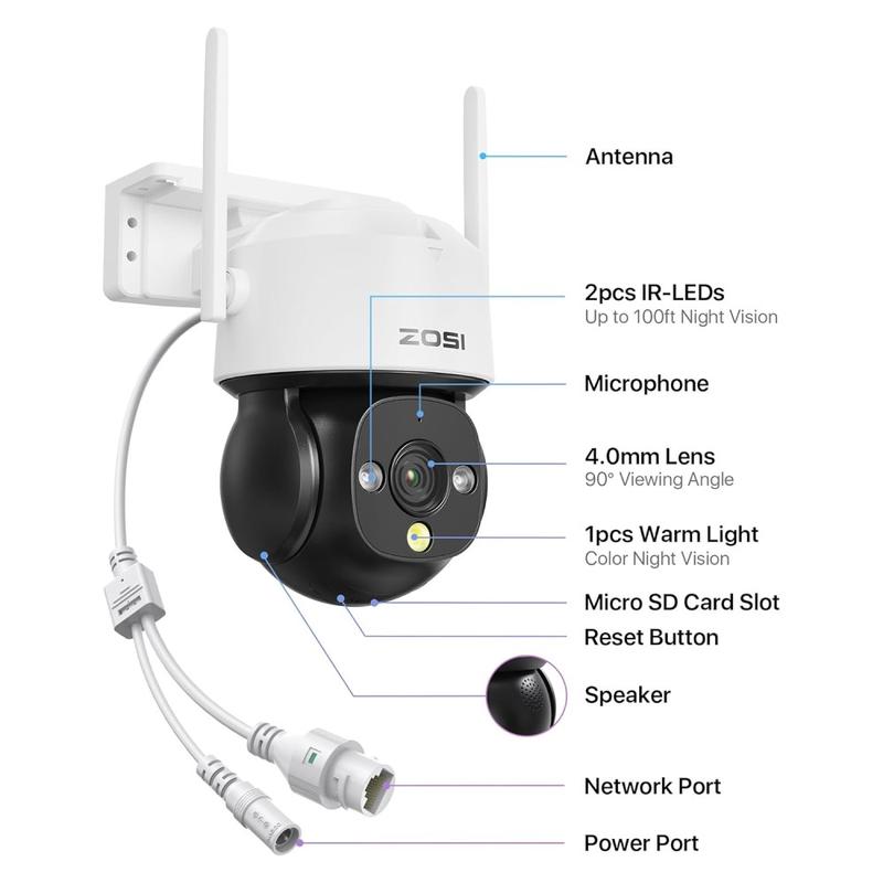 Secure larger areas day or night with one compact, weather-tough camera. The ZOSI C290SE combines 4-megapixel clarity, full PTZ control, colour night vision and on-board two-way audio—so you can see, hear and speak from anywhere.
