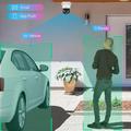 - AI analysis detects human shapes and vehicles, then tracks motion.