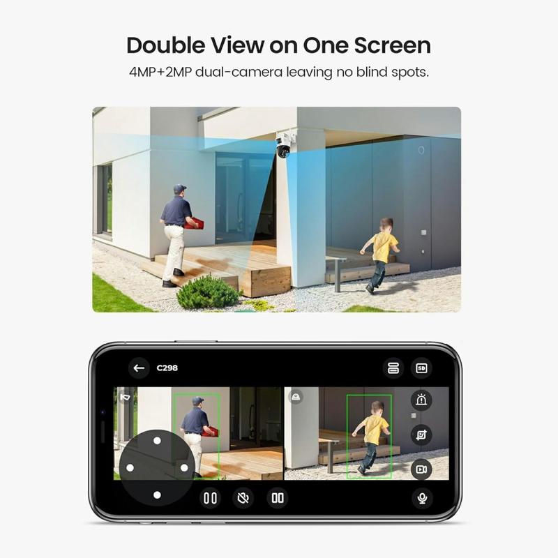 ZOSI C298SE 6MP Dual-Lens Pan-Tilt Camera with AI Tracking, Colour Night Vision, Two-Way Audio, WiFi, Full-Outdoor Coverage